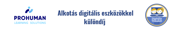A Prohuman Learning Solutions (korábban: EdTech Magyarország Kft.), a Digitális Témahét 2026. évi pályázat bronz fokozatú támogatója különdíjat hirdet azon csatlakozó pedagógusok számára, akik olyan pedagógiai projekteket valósítanak meg, amelyeknek projektjeiben kiemelten jelenik meg a digitális tárgyalkotás mint kompetenciafejlesztő tevékenység.