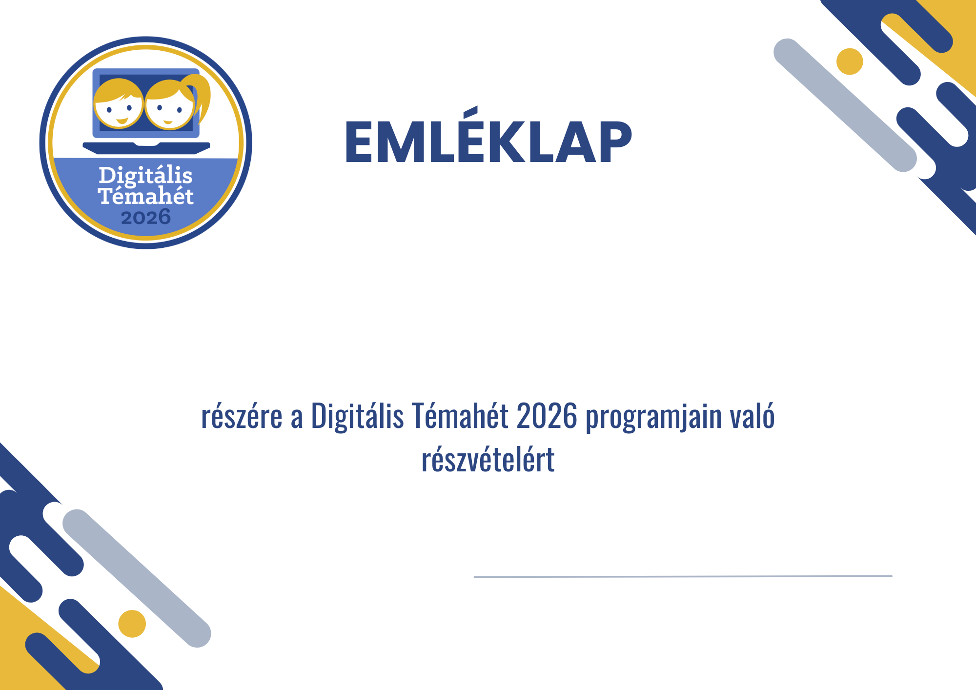 A Digitális Témahéten megvalósuló pedagógiai projektek lezárásaként sokan emléklappal jutalmazzák a részt vevő tanulókat. Idén is készült pár emléklapminta.