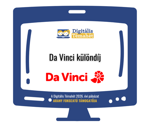 A Da Vinci televíziós csatorna és streaming-szolgáltató, a Digitális Témahét 2026. évi pályázat arany fokozatú támogatója különdíjat hirdet azon csatlakozó általános iskolák számára, amelyek olyan pedagógiai projekteket valósítanak meg, amelyekben több tantárgy és tudásterület jelenik meg a korszerű digitális technológia alkalmazásával.